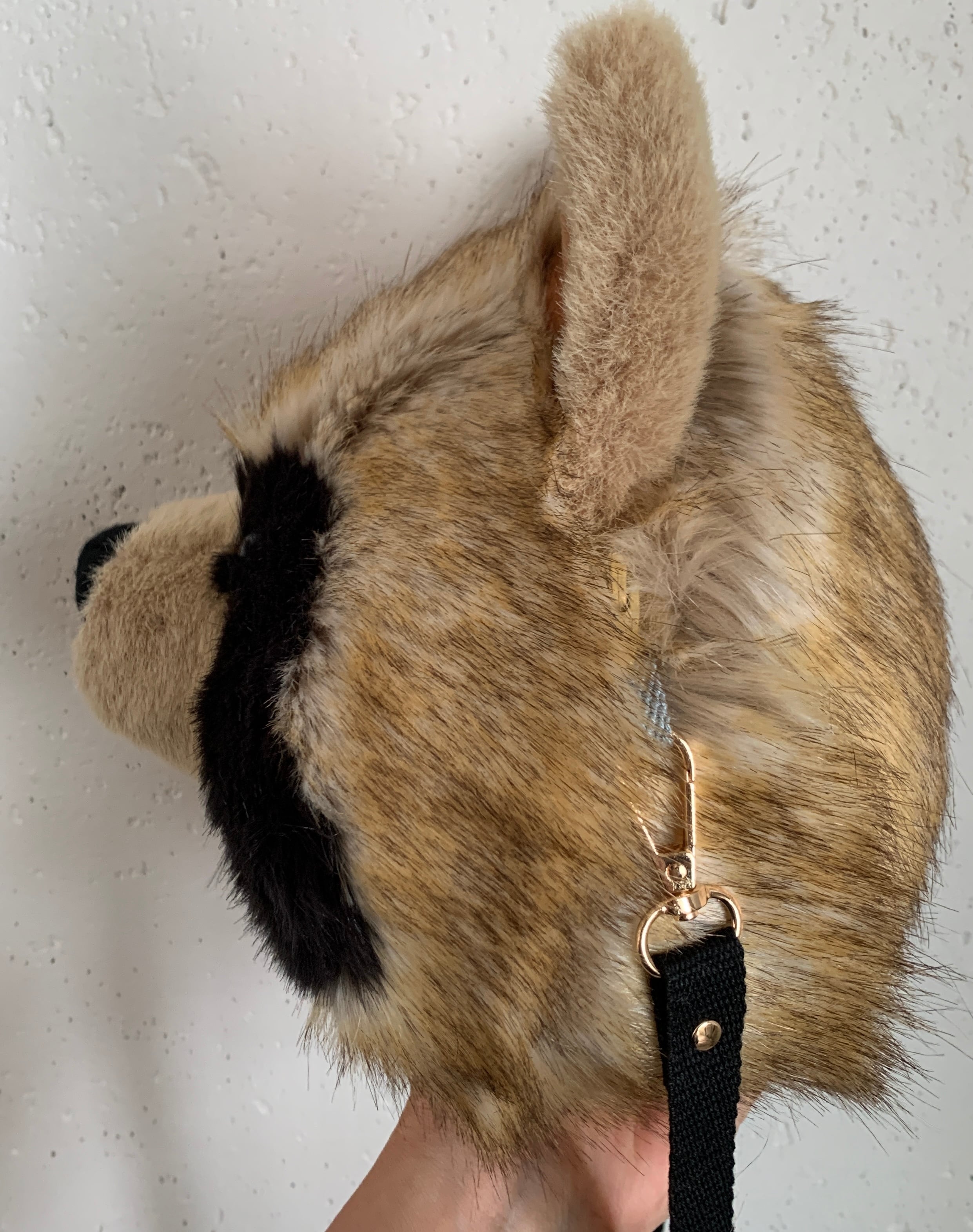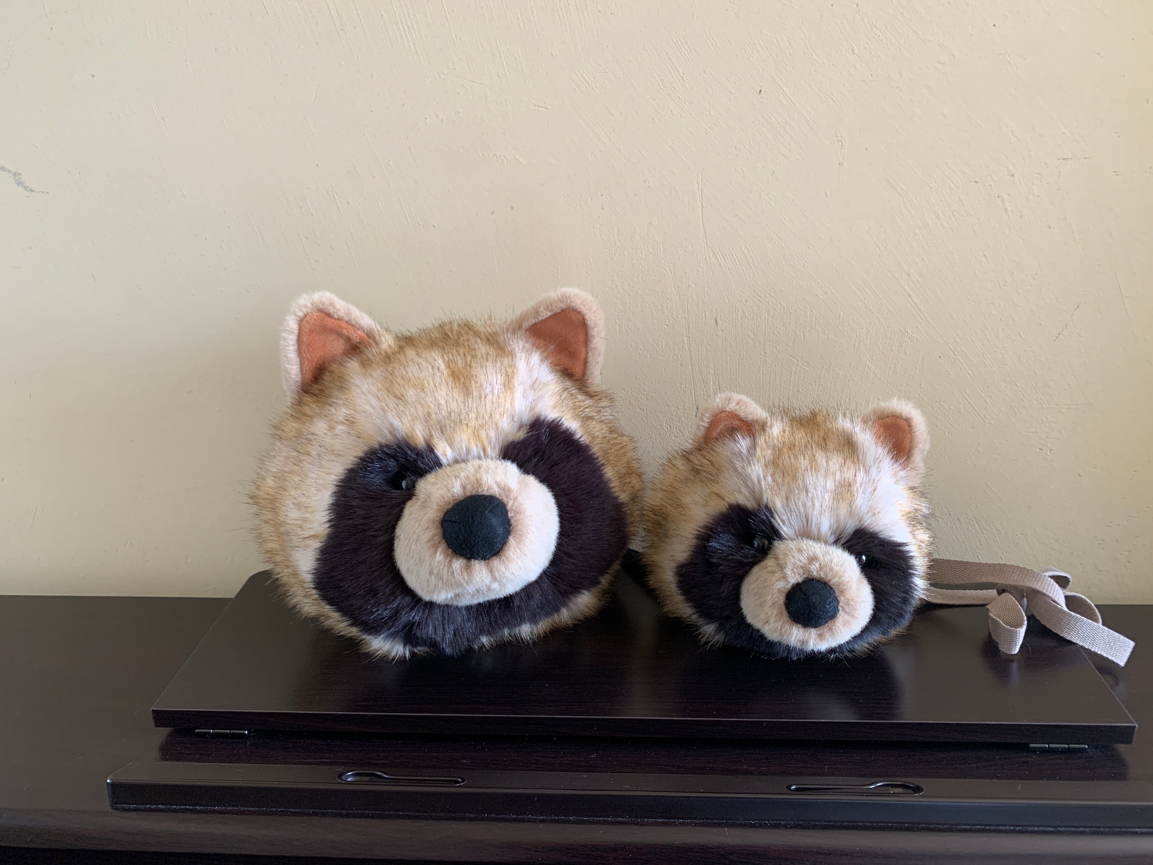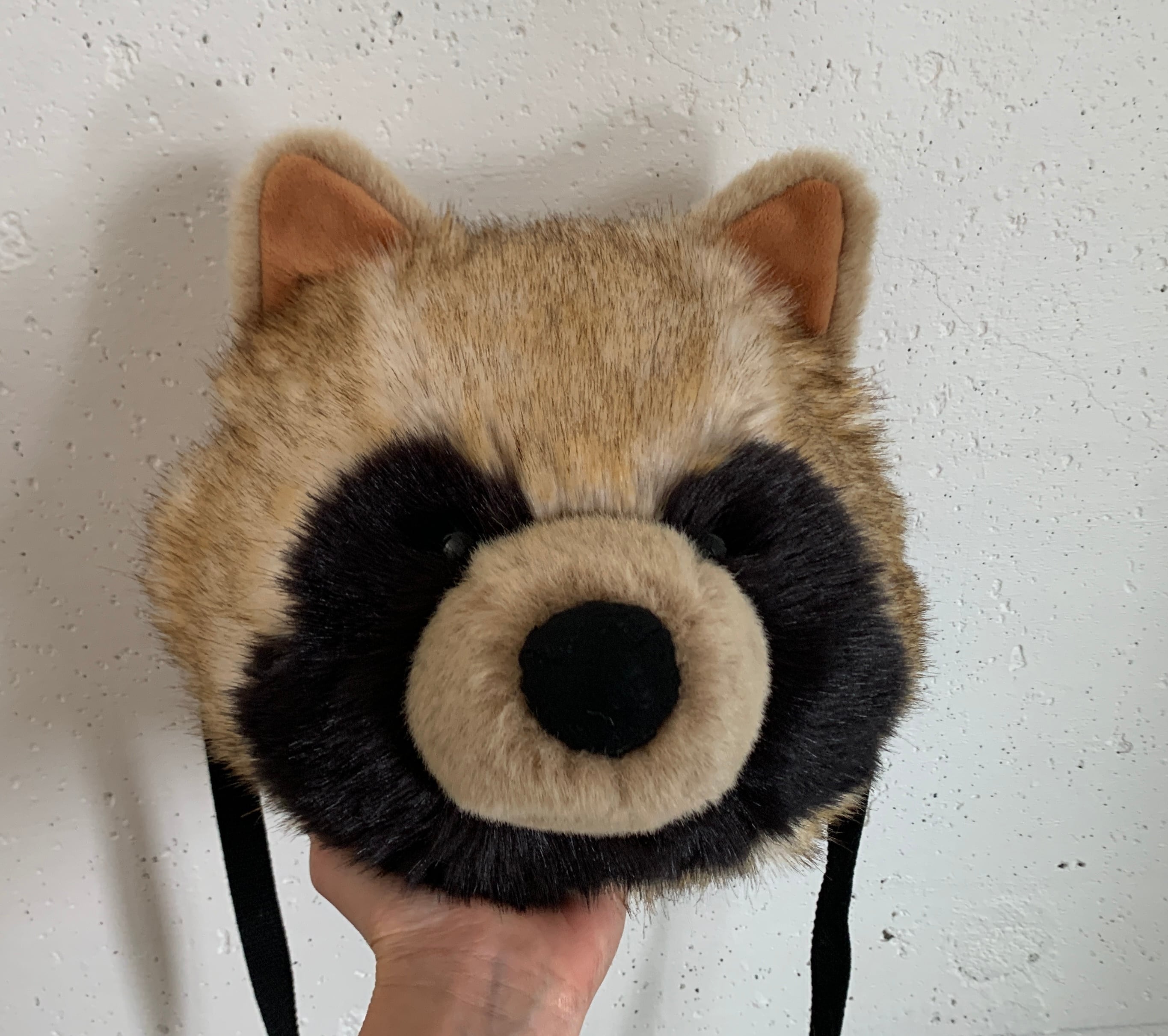 タヌキのもふもふの冬毛状態を、そのままポーチ?かばん?にしました。